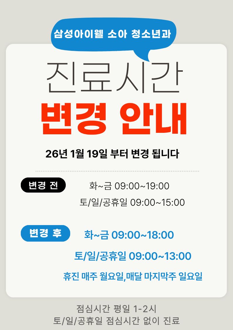 2026년 1월 19일부터 진료시간이 변경됩니다.