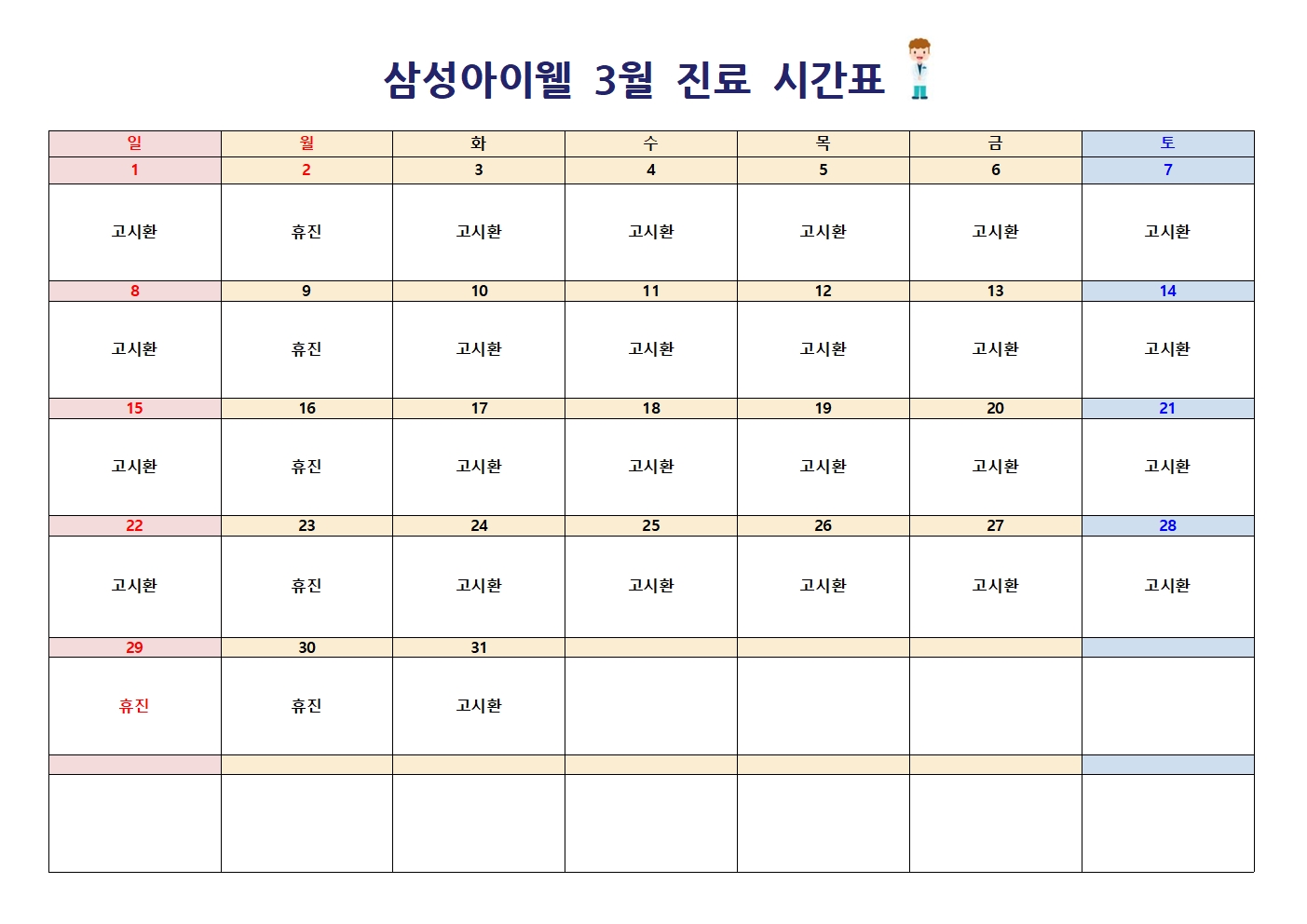 3월 진료시간표입니다